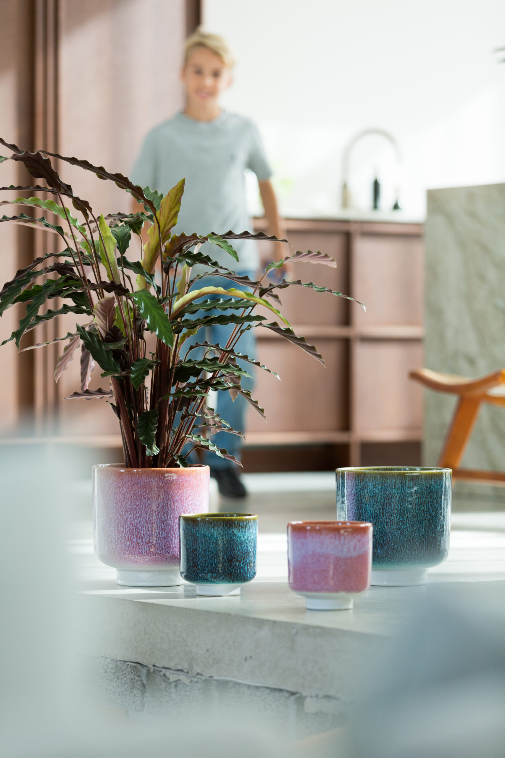 This Tupelo pot is made in Portugal and fits perfectly into any interior. It features a beautiful glaze available in three different colors.