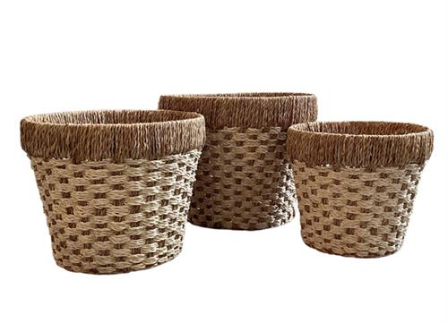 This Yuma basket set is made from seagrass and features a plastic liner on the inside, allowing you to water your plants with ease. It fits beautifully into any home.